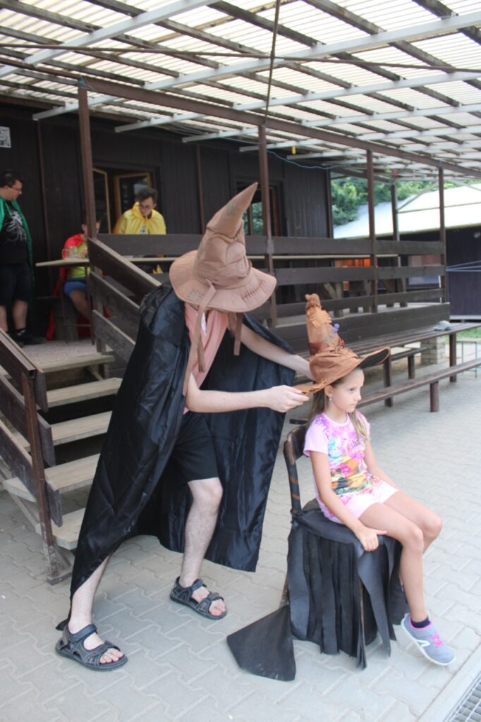 Po obědě se účastníci vydali k místnímu rybníku, kde využili příznivého počasí ke koupání. Odpoledne pokračovalo společnou procházkou po okolí a vyráběním kouzelných košťat. V podvečer se představili zakladatelé kouzelnické školy a přivítali i ostatní hosty z kouzelného světa.