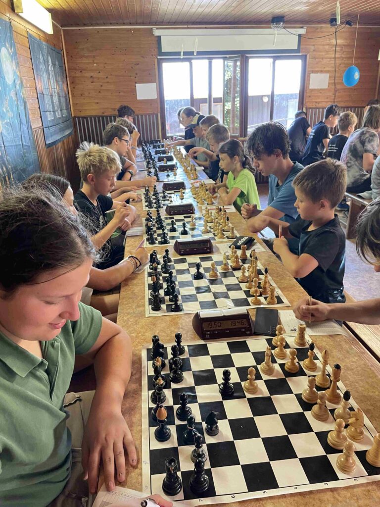 Nyní probíhá šachový turnaj, v němž děti uplatňují dovednosti nabyté během lekcí se zkušenými trenéry. Každá partie je hned po dohrání rozebírána, děti dostávají zpětnou vazbu a učí se přemýšlet o každém tahu – jako by hrály kouzelnické šachy, kde na výsledku může záviset celý příběh.