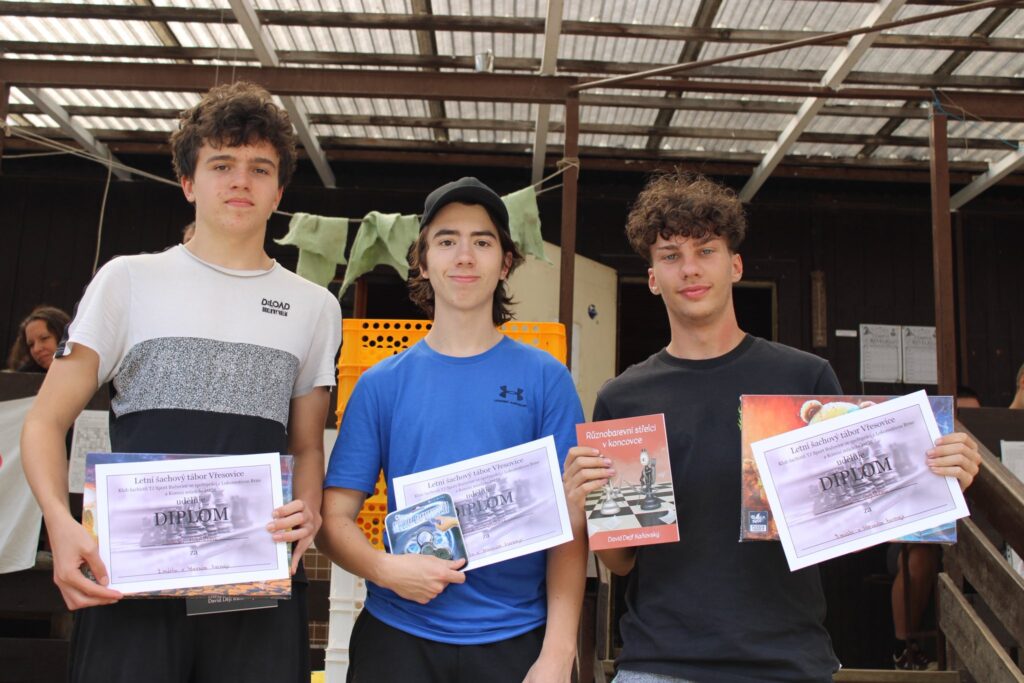 Na závěr nechyběl tradiční bleskový turnaj, do kterého se s chutí zapojili i vedoucí a další členové personálu. Partie byly plné zvratů, odvážných obětí i rychlých protiútoků. Vítězem se stal Šimon Volák (ŠK Lokomotiva Brno), druhé místo obsadil Jakub Oujeský (ŠK Duras Brno) a bronz vybojoval Matouš Nerud (ŠK Duras Brno) – všichni shodně 8,5 bodu.