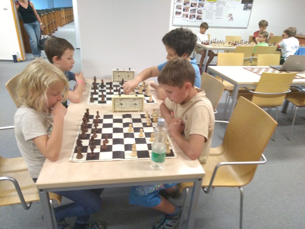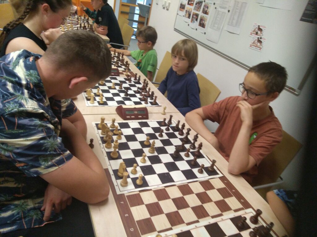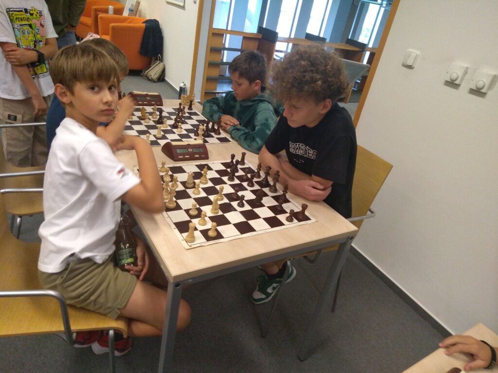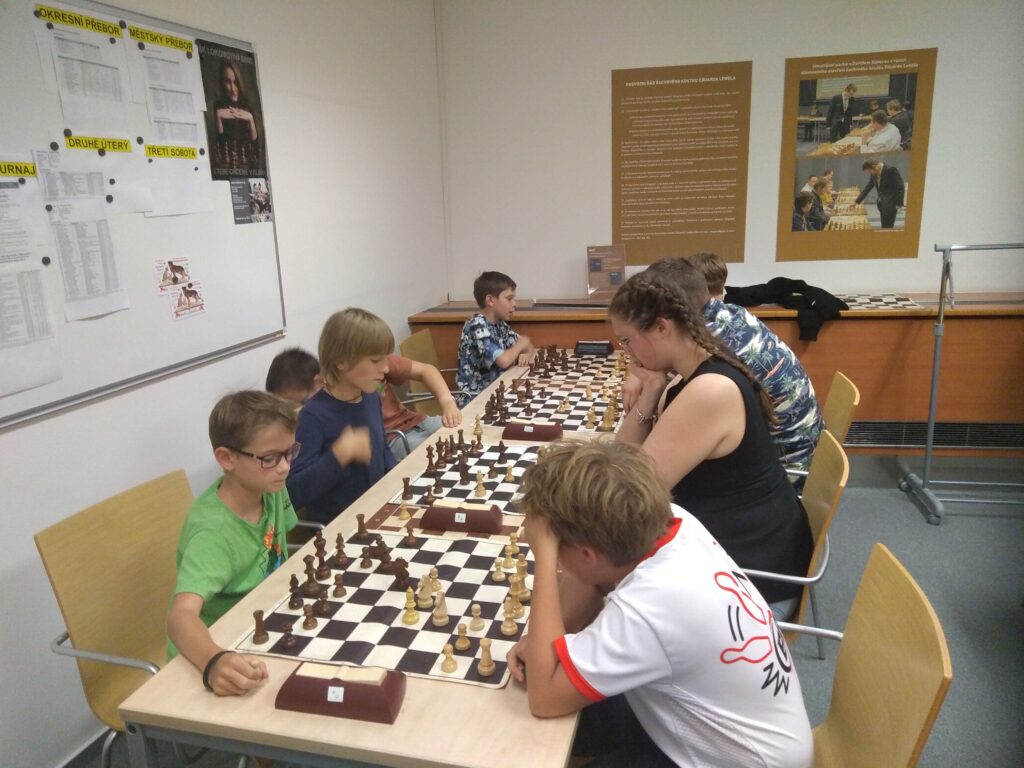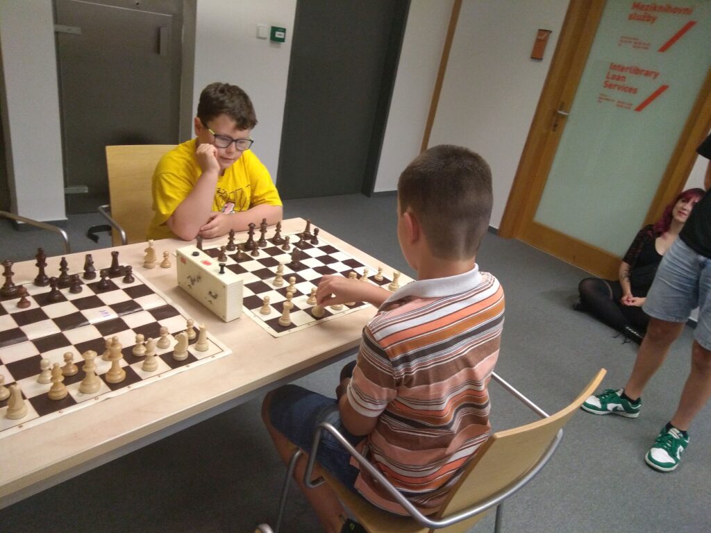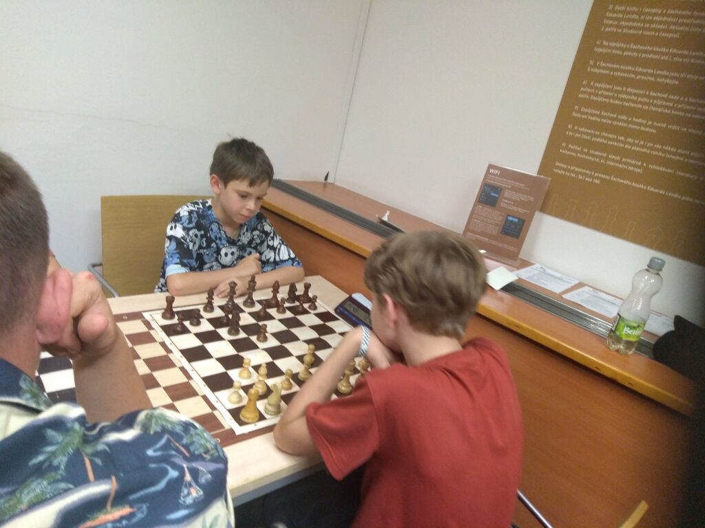 V hlavním sále probíhaly nějaké rekonstrukční práce, a proto 23 šachuchtivých mladých adeptů šachové hry zamířilo do prvního patra do šachového koutku Eduarda Lendla.