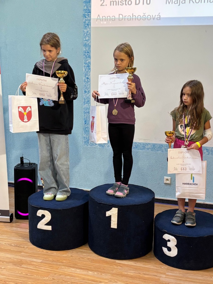 Akce se zúčastnilo 200 soutěžících a nás může těšit, že v těžké republikové konkurenci uspěly především naše dívky – zde na snímku vidíme vítězku Máju Komárkovou z brněnské Mint Chess Academy.